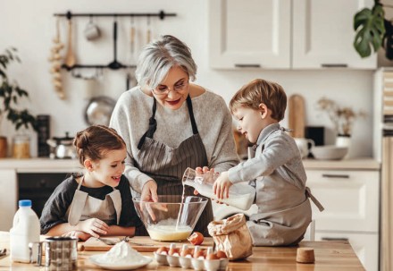 Seniorzy powinni mieć kuchnię zaprojektowaną wyjątkowo ergonomicznie. Należy zadbać o łatwy dostęp do płyty kuchennej, piekarnika, zlewozmywaka oraz blatu roboczego, które warto umieścić obok siebie. Pamiętajmy o wysokościach ich montażu, dostosowanych do sposobu poruszania się. Jeżeli posiłki przygotowują osoby na wózku, wysokość blatu roboczego powinna wynosić ok. 72 cm od podłogi. Dobrym rozwiązaniem będą też wysuwane, a przy tym stabilne blaty robocze o dużej nośności. Meble najlepiej zaprojektować bez górnej zabudowy, a jeśli się na taką decydujemy, udogodnieniem będą wysuwane i opuszczane kosze. Nad blatem roboczym można zamontować półkę, pamiętając przy tym, że osoba siedząca na wózku sięga zazwyczaj do wysokości 120 cm. Warto zdecydować się na montaż niskich szaf typu cargo.
