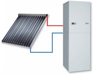 Kocioł ECONCEPT SOLAR ST ze 180 litrowym warstwowym zasobnikiem przystosowany do bezpośredniej współpracy z panelami solarnymi.