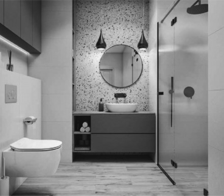 • Precyzyjnie dobierajmy formaty. Nawet jeśli jesteśmy zakochani w cegiełkach układanych np. w jodełkę, zweryfikujmy to rozwiązanie, „przymierzając” je do konkretnego wnętrza – cięcia z boków oraz od góry wyglądają bardzo nieestetycznie. Podczas podejmowania decyzji, bardzo ważną rolę odgrywają dobrze przeprowadzone pomiary każdego elementu – obudowy WC, kabiny prysznicowej, pasa ściany nad umywalką, który chcemy wyróżnić inną okładziną lub odrębnym formatem płytek. Projekt powinien uwzględnić zarówno grubość materiałów, które będziemy łączyć, jak i fugi.